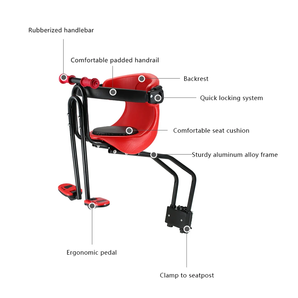 Home » best price , kids product » New Back Rest Foot Pedals Bicycle Baby Seat Kids Child Safety Carrier Front Seat Saddle Cushion