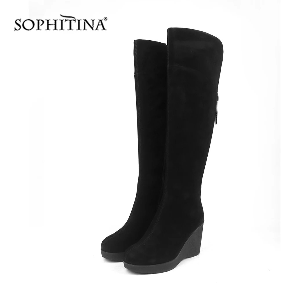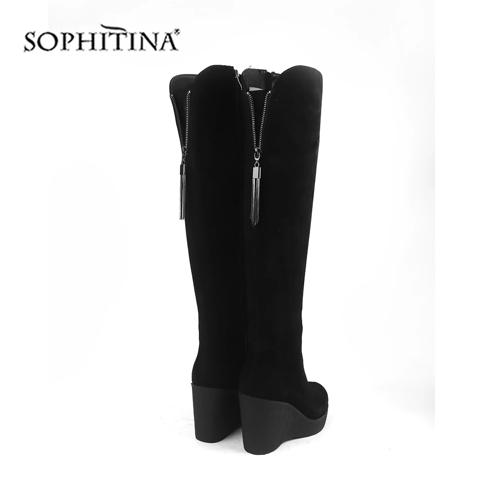 Best SOPHITINA Comfortable Round Toe Boots High Quality Kid Suede Wedges Fashion Zipper Solid Shoes New