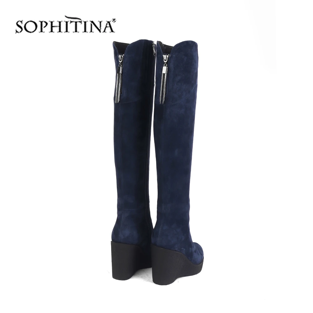 New SOPHITINA Comfortable Round Toe Boots High Quality Kid Suede Wedges Fashion Zipper Solid Shoes New